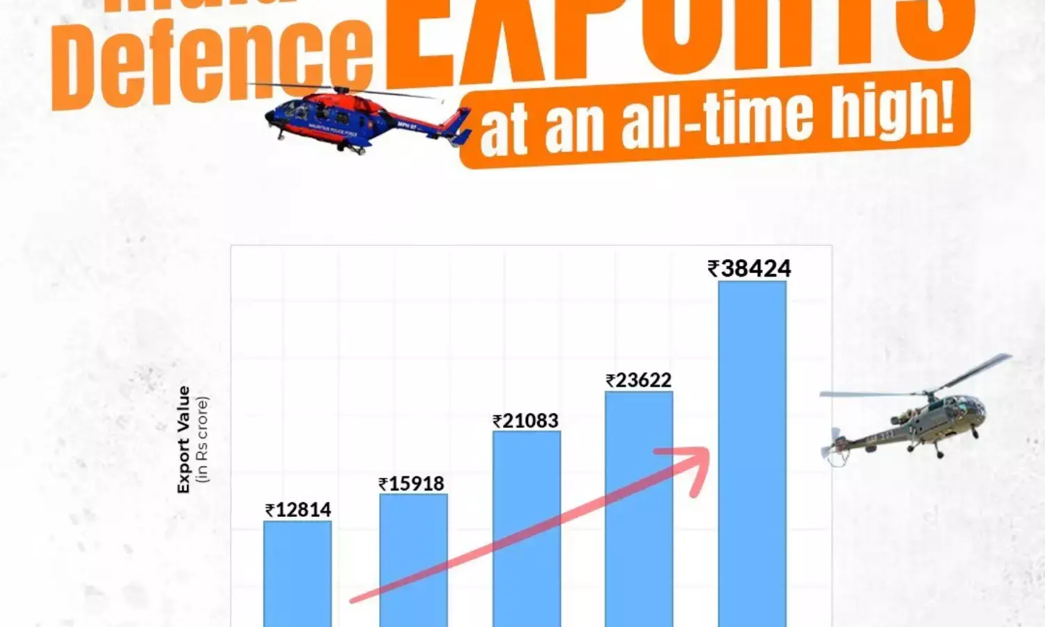 भारत ने रक्षा क्षेत्र में एक नया इतिहास रच दिया है। वित्त वर्ष 2025-26 में देश का रक्षा निर्यात रिकॉर्ड स्तर पर पहुंच गया है। सरकारी आंकड़ों के मुताबिक, इस अवधि में भारत का कुल रक्षा निर्यात बढ़कर 38,424 करोड़ रुपये हो गया है, जो पिछले साल के मुकाबले 62.66 प्रतिशत की जबरदस्त बढ़ोतरी है।