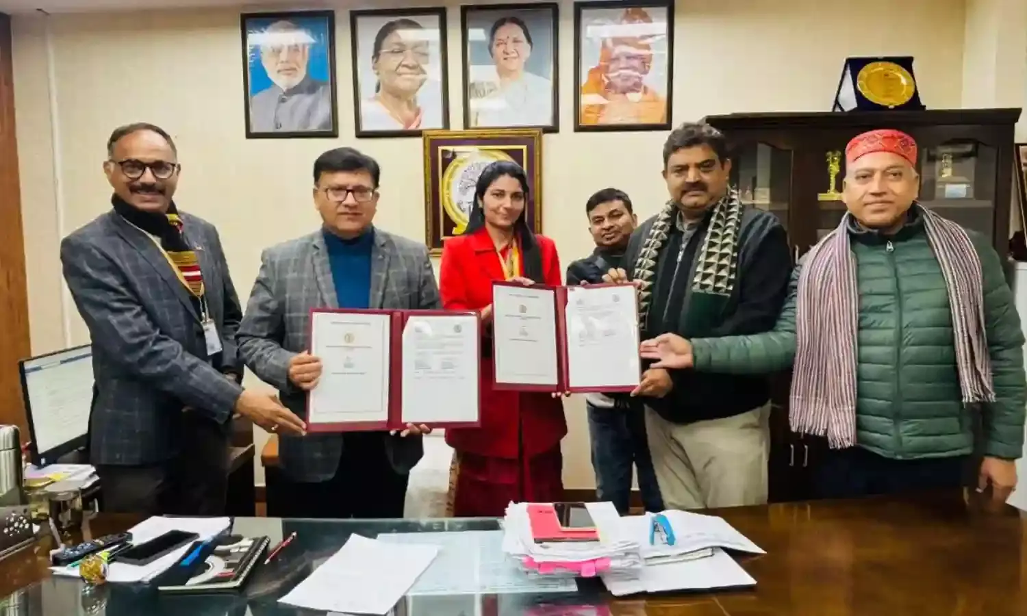 समझौता ज्ञापन के दौरान MoU नोडल अधिकारी डॉ. नीरज शुक्ला, कुलसचिव डॉ. महेश कुमार, प्रो. सौबान सईद एवं डॉ राजकुमार भी उपस्थित रहे।