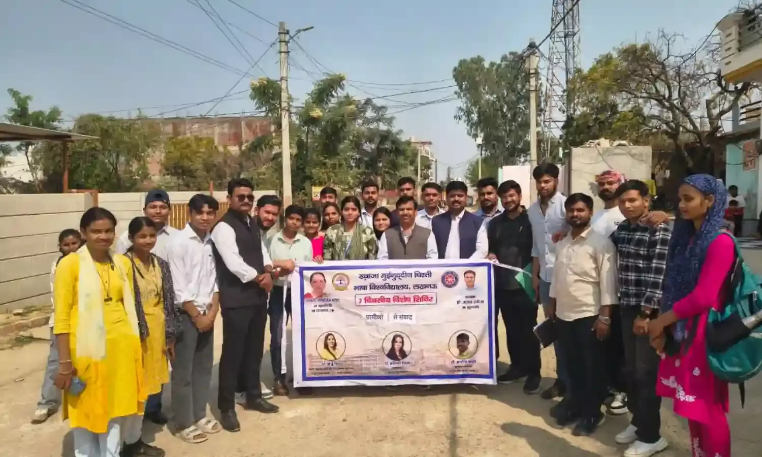 ख़्वाजा मुईनुद्दीन चिश्ती भाषा विश्वविद्यालय लखनऊ की *राष्ट्रीय सेवा योजना इकाई -7 के सात दिवसीय विशेष शिविर * के चौथे दिन आज स्वयंसेवको द्वारा ग्रामीणों से राज्य सरकार व केंद्र सरकार विभिन्न योजनाओं एवं मुद्दों पर संवाद किया | जिसमे सुकन्या समृद्धि योजना , पीएम आवास योजना,मुख्यमंत्री कन्या सुमंगला योजना,प्रधानमंत्री सम्मान निधि योजना, जल संरक्षण, शिक्षा, बालिका शिक्षा, नशा मुक्ति, महिलाओ को सम्मान दिये जाने पर जोर दिया |स्वयंसेवको श्रमदान भी किया |