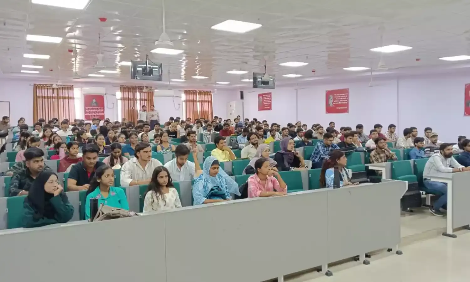 सत्र के मुख्य वक्ता आयुष सिंह एवं आदित्य शर्मा ने विद्यार्थियों को संबोधित करते हुए कहा कि आज के प्रतिस्पर्धी और तेजी से बदलते व्यावसायिक परिवेश में केवल शैक्षणिक डिग्री सफलता की गारंटी नहीं है। उन्होंने जोर देकर कहा कि डिग्री के साथ-साथ विद्यार्थियों में बहुआयामी कौशलों का विकास अत्यंत आवश्यक है।उन्होंने कम्युनिकेशन स्किल्स के महत्व को रेखांकित करते हुए बताया कि प्रभावी संचार व्यक्ति को अपने विचारों को स्पष्ट, आत्मविश्वासपूर्ण और प्रभावशाली ढंग से प्रस्तुत करने में सक्षम बनाता है।