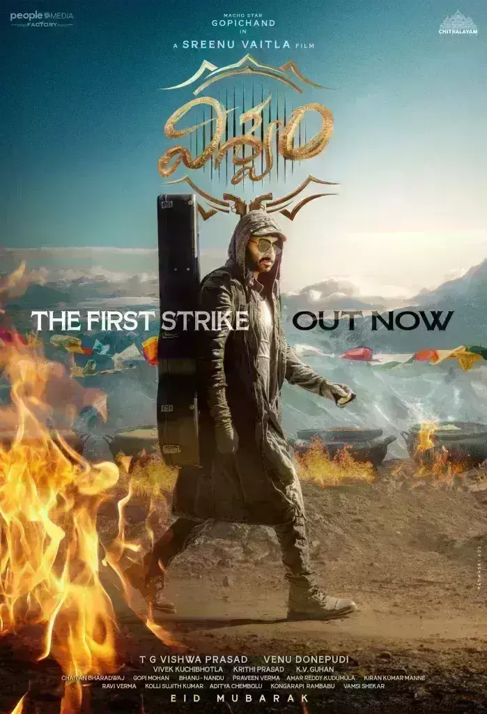 गोपीचंद 32 के शीर्षक से उठा पर्दा, गोपीचंद की फिल्म विश्वम का फर्स्ट स्ट्राइक टीजऱ जारी