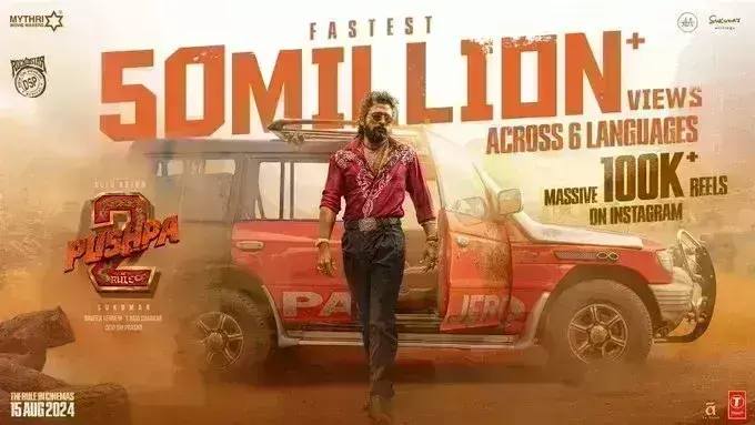 अब सॉन्ग पुष्पा-पुष्पा यूट्यूब पर धमाल मचा रहा है. पुष्पा-पुष्पा ना सिर्फ घरेलू बल्कि इंटरनेशनल ऑडियंस को भी हिट कर रहा है. अब सॉन्ग पुष्पा-पुष्पा ने अपने नाम बड़ा रिकॉर्ड कर लिया है.पुष्पा-पुष्पा पहला ऐसा गाना बन गया है, जिसने 6 भाषाओं में सबसे जल्दी 50 मिलियन से ज्यादा व्यूज हासिल कर लिए हैं. वहीं, इंस्टाग्राम पर इस पर 1 लाख से ज्यादा रील्स बन चुकी हैं. इस मौके पर पुष्पा 2 द रूल के मेकर्स ने एक पोस्ट जारी किया है, जिसमें यह आंकड़ा बताया है. बता दें, तेलुगू और हिंदी के साथ-साथ यह गाना तमिल, कन्नड़, मलयालम और बंगाली भाषा में भी रिलीज हुआ है.