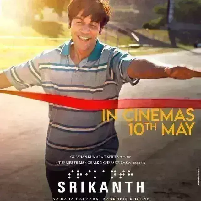 राजकुमार राव की अपकमिंग फिल्म श्रीकांत का पहला लुक सामने आ गया है. दिव्यांग बिजनेसमैन श्रीकांत बोला की बायोपिक में राजकुमार मुख्य भूमिका निभाते हुए नजर आ रहे हैं. फिल्म 10 मई को सिनेमाघरों में दर्शकों के सामने होगी. इस फिल्म में राजकुमार राव के अलावा ज्योतिका, अलाया एफ और शरद केलकर जैसे एक्टर्स भी महत्वपूर्ण भूमिका निभाते हुए नजर आएंगे. फिल्म के पहले ही लुक में राजकुमार राव ने फैन्स को इंप्रेस कर दिया है.फिल्म के फर्स्ट लुक में राजकुमार राव एक सड़क पर भागते हुए नजर आ रहे हैं और फिनिशिंग लाइन पर रिब्बन को छूकर आगे निकल जाते हैं, जिसके बाद स्क्रीन पर फिल्म श्रीकांत की रिलीज की तारीख लिखी हुई आती है. राजकुमार राव ने फिल्म के फर्स्ट लुक का वीडियो अपने ऑफिशियल इंस्टाग्राम हैंडल से शेयर किया है.