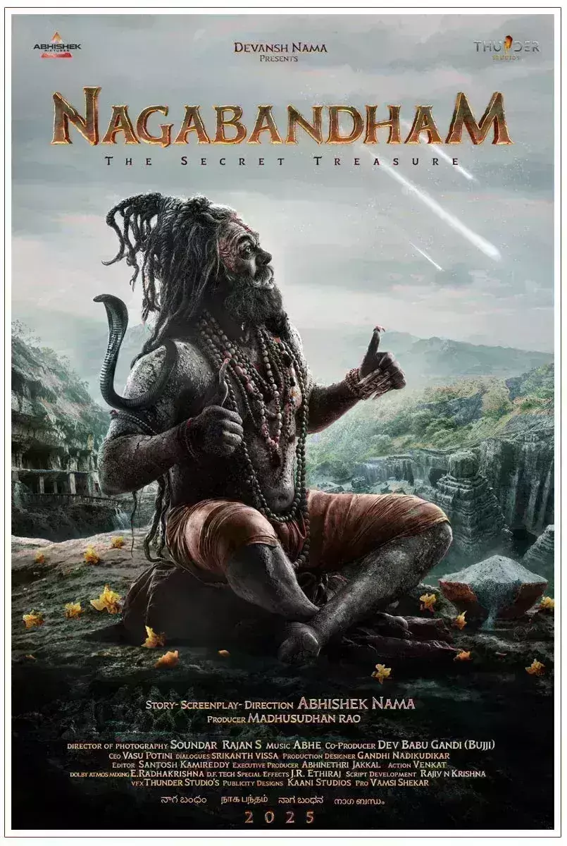 अभिषेक नामा फिल्म का निर्देशन करेंगे, जिसका निर्माण मधुसूदन राव द्वारा किया जा रहा है. देवांश नामा फिल्म को प्रस्तुत कर रहे हैं, जबकि देव बाबू गांधी सह-निर्माता हैं.फिल्म का नाम नागबंधम है और टैगलाइन है- द सीक्रेट ट्रेजर। परिचयात्मक वीडियो हमें एक मंत्रमुग्ध और रहस्यमय दुनिया दिखाता है, जिसे एक मनोरम साउंडट्रैक और शानदार दृश्यों के साथ और बढ़ाया गया है। वीएफएक्स का काम प्रभावशाली है।