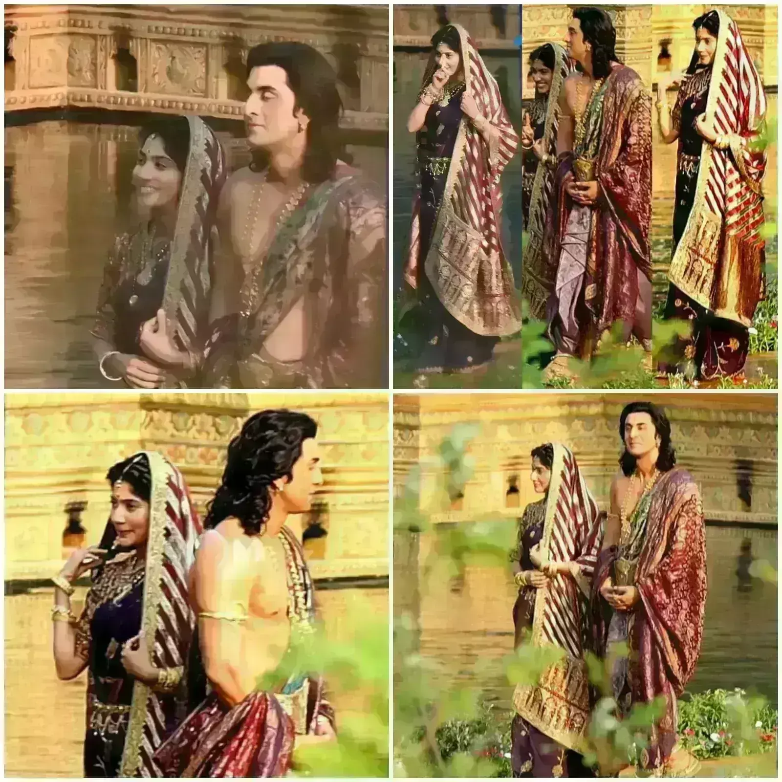 फिल्म रामायण इन दिनों सुर्खियों में है। यह फिल्म इसलिए भी चर्चा में है, क्योंकि इसे काफी बड़े स्तर पर बनाया जा रहा है और कई बड़े सितारे इससे जुड़े हैं। यही वजह है कि फिल्म से जुड़ी हर छोटी-बड़ी जानकारी पर प्रशंसक नजर नाए हुए हैं।अब नितेश तिवारी के निर्देशन में बन रही इस फिल्म में भगवान श्रीराम बने रणबीर कपूर और माता सीता के अवतार में साई पल्लवी की पहली झलक सेट से लीक हो गई है।फिल्म के सेट से रणबीर और साई की कुछ तस्वीरें सामने आई हैं, जिनमें उन्हें भगवान राम और मां सीता के अवतार में देखा जा सकता है। इन तस्वीरों ने आते ही सोशल मीडिया पर तहलका मचा दिया है।दोनों का लुक लोगों को खूब भा रहा है। तस्वीरों को देख लग रहा है कि ये राम और सीता की शादी के बाद वाला सीन है।