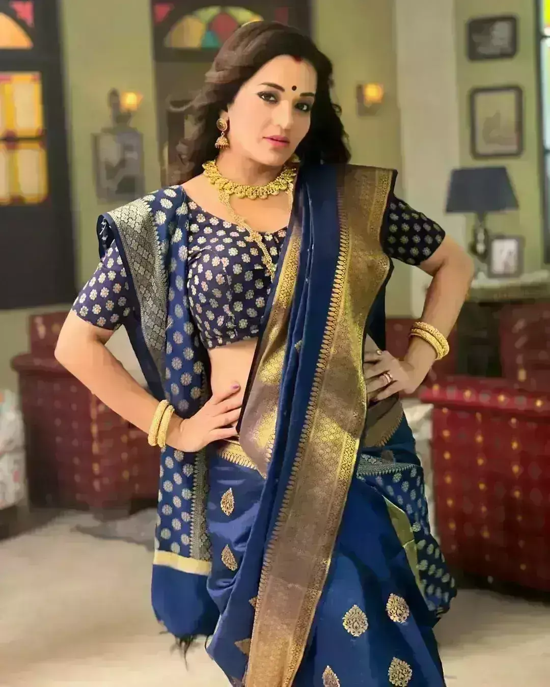 भोजपुरी फिल्मों की देसी क्वीन मोनालिसा सोशल मीडिया पर हमेशा ही अपने ग्लैमरस लुक्स के कारण छाई रहती हैं. आए दिन वह अपनी खूबसूरत तस्वीरें और वीडियो शेयर कर फैंस को दीवाना बना देती हैं. हाल ही में, मोनालिसा ने अपने इंस्टाग्राम अकाउंट पर कुछ तस्वीरें शेयर की हैं, जिनमें वह देसी लुक में नजर आ रही हैं. इन तस्वीरों में मोनालिसा ने नीले रंग की साड़ी पहनी हुई है और माथे पर बिंदी लगा रखी है.