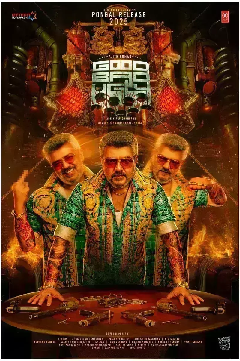 माइथ्री प्रोडक्शंस ने अपने सोशल मीडिया पर गुड बैड अग्ली फिल्म से अभिनेता अजित का अनोखा लुक जारी किया है। पोस्टर में अजित के तीन लुक दिख रहे हैं। अजित के लुक को देखकर लग रहा है कि वह किसी माफिया का किरदार फिल्म में निभा रहे हैं। उनके सामने टेबल पर बहुत सारी बंदूकें रखी हैं। प्रशंसक अभिनेता के इस लुक को देखकर अंदाजा लगा रहे हैं कि यह एक अपराध कॉमेडी फिल्म हो सकती है। फिल्म के पोस्टर को देखकर अटकलें लगाई जा रही हैं कि फिल्म गुड बैड अग्ली में अजित कुमार ट्रिपल भूमिका में नजर आ सकते हैं। बता दें कि 2006 की ब्लॉकबस्टर वरलारु के बाद यह अजित कुमार की दूसरी ट्रिपल भूमिका वाली फिल्म होगी।