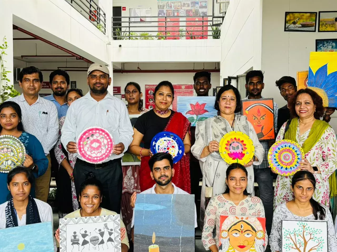 समारोह की शुरुआत में डॉ. रुचिता सुजय चौधरी, नोडल अधिकारी, आर्ट गैलरी ने अतिथियों का स्वागत किया और कार्यशाला के पिछले तीन दिनों में आयोजित गतिविधियों की जानकारी दी। उन्होंने बताया कि पहला दिन कैनवास और रंगों को समर्पित था, जिसमें प्रतिभागियों ने अपनी रचनात्मक सोच को कैनवास पर अभिव्यक्त किया। दूसरे दिन प्रतिभागियों ने लिपन और मंडला कला की तकनीकें सीखी। तीसरे दिन कार्यशाला DIY कल्चर के लिए समर्पित था, जिसमें प्रतिभागियों ने “कबाड़ से जुगाड़” वॉल डेकोर तैयार किए और अपनी कला कौशल का शानदार प्रदर्शन किया।