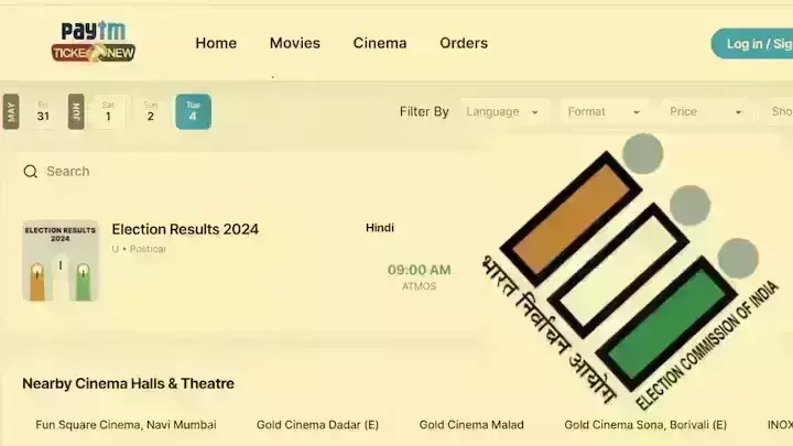 पेटीएम के टिकट न्यू वेबसाइट पर इसकी बुकिंग का शो दिखा रहा है। यह 4 जून को सुबह 9 बजे से शुरू होगा और 6 घंटे तक चलेगा।यह शो हिंदी में होगा। बुक माय शो में इसके विषय में कोई जानकारी नहीं दी गई है। मूवी मैक्स हुमा के अलावा अन्य किसी मल्टीप्लेक्स में चुनाव परिणाम की जानकारी नहीं है।बता दें कि चुनाव में इस बार भाजपा को विपक्षी पार्टियों का इंडिया गठबंधन टक्कर दे रहा है।