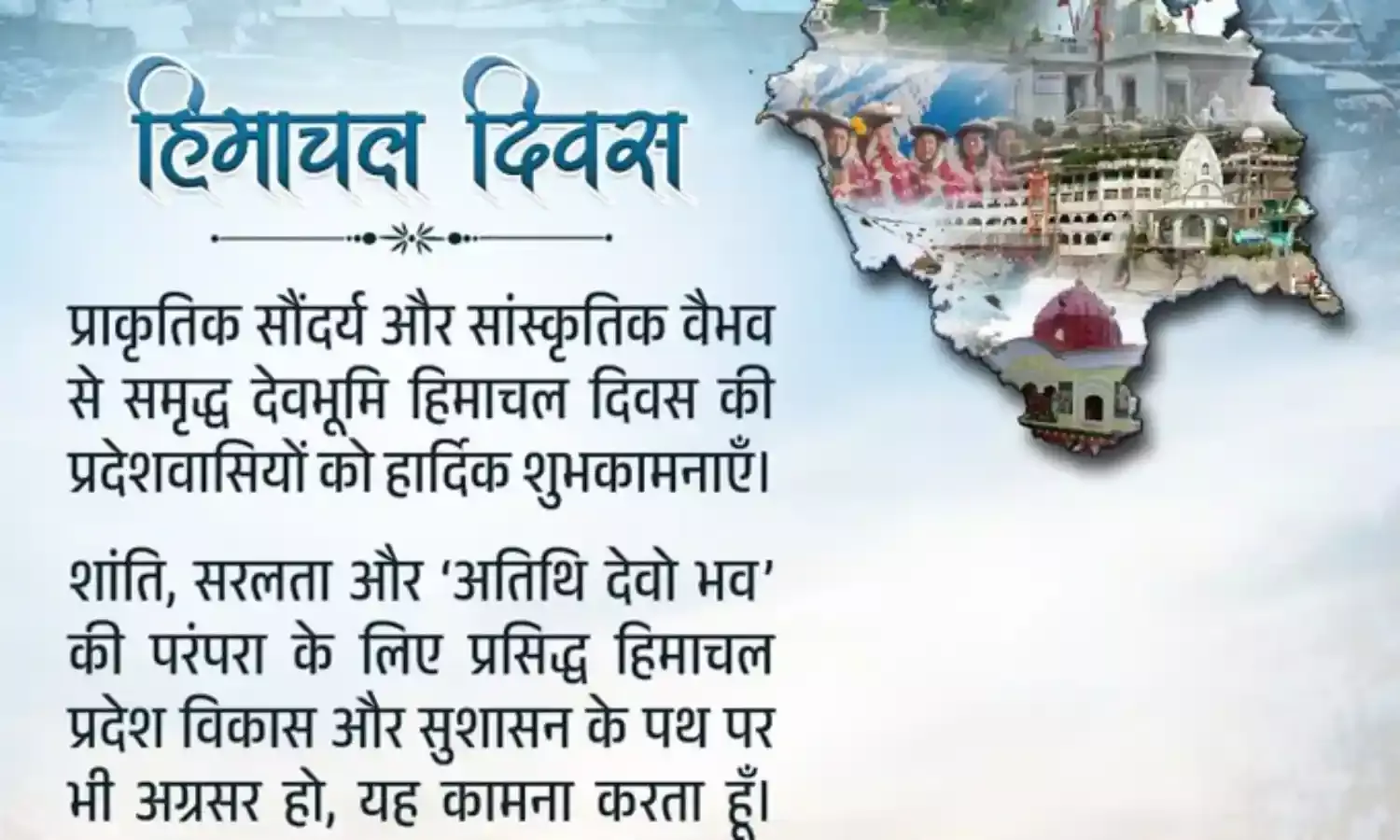 साथ ही केंद्रीय गृह मंत्री अमित शाह ने भी सोशल मीडिया प्लेटफॉर्म एक्स पर पोस्ट करते हुए लिखा कि प्राकृतिक सौंदर्य और सांस्कृतिक वैभव से समृद्ध देवभूमि हिमाचल प्रदेश के स्थापना दिवस की प्रदेशवासियों को हार्दिक शुभकामनाएँ।