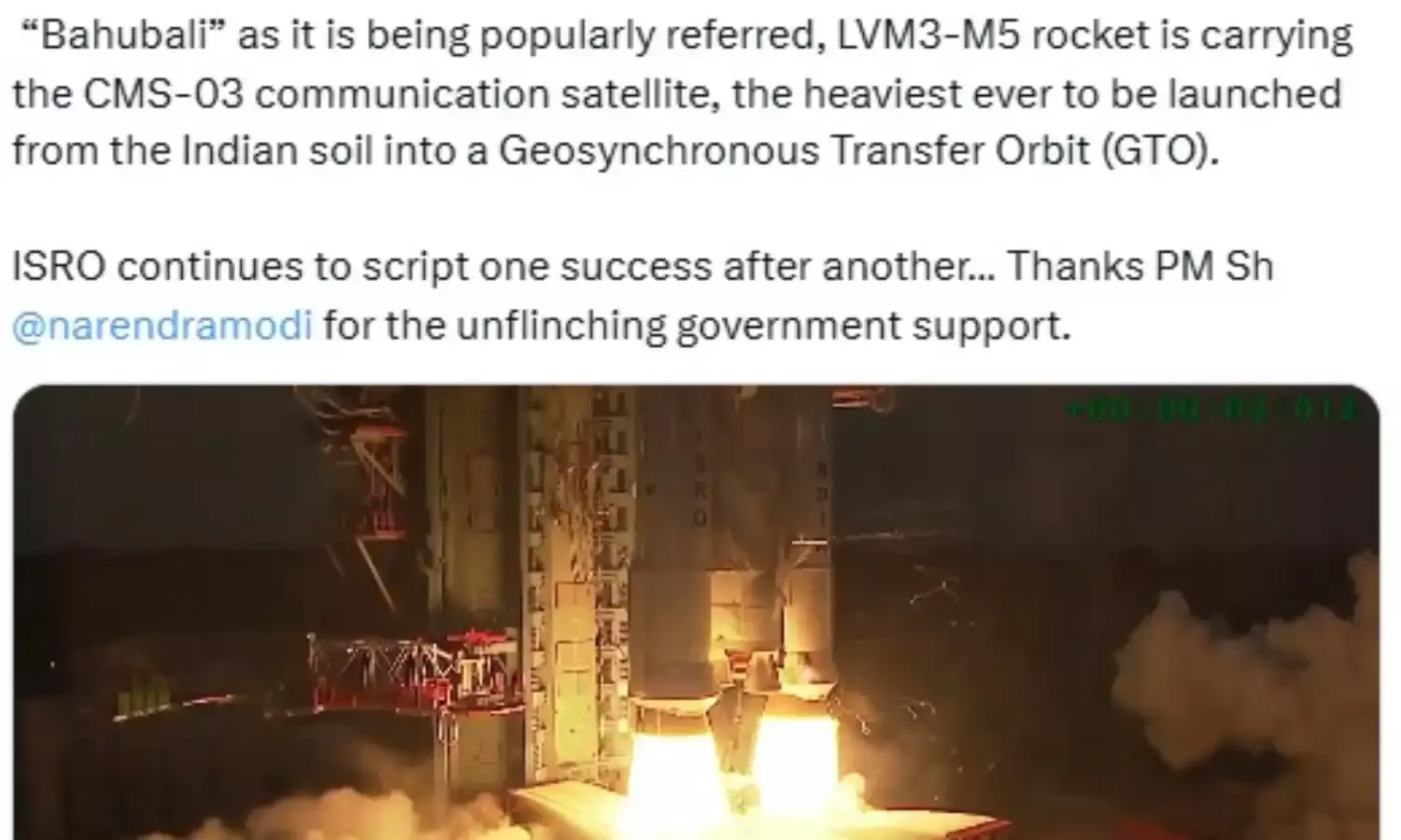 Science Minister Dr Jitendra Singh praised ISRO’s successful LVM3-M5 mission, which launched CMS-03, India’s heaviest communication satellite.