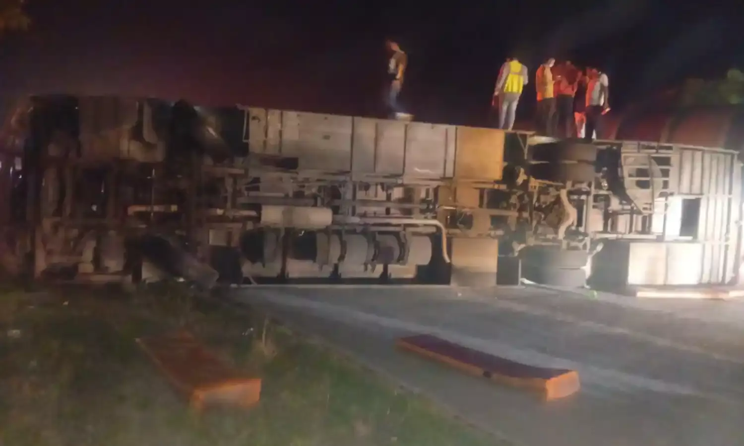 मथुराः यमुना एक्सप्रेस-वे पर स्लीपर बस पलटी, 40 यात्री घायल, 10 गंभीर रुप से घायल