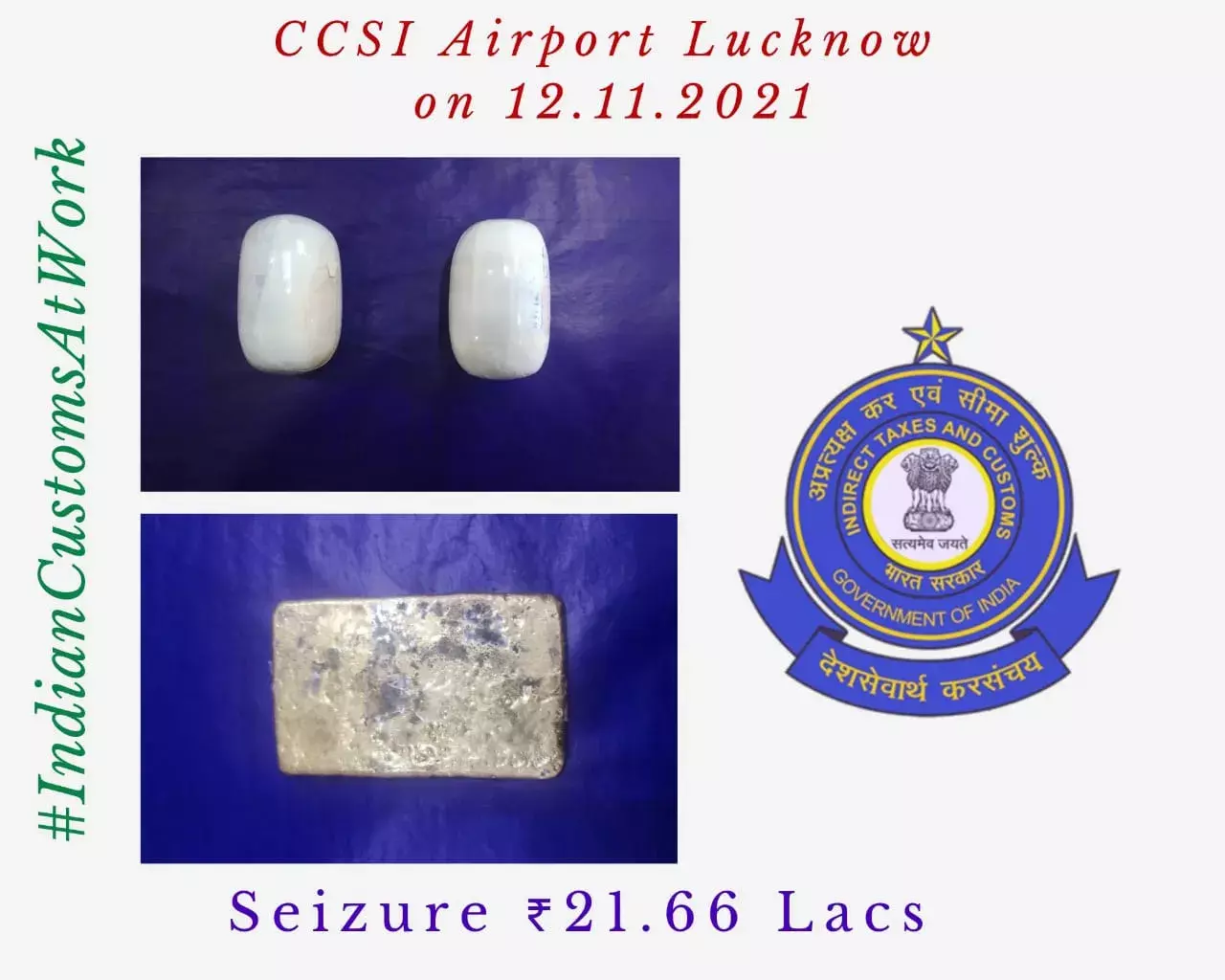 चौधरी चरण सिंह अंतरराष्ट्रीय एयरपोर्ट पर कस्टम अधिकारियो ने पकड़ा 21 लाख 66 हजार का सोना