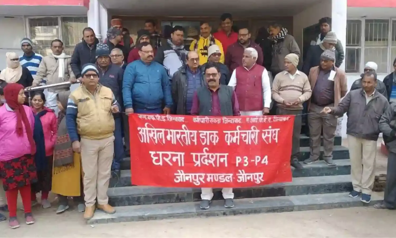 जौनपुर। केन्द्रीय नेतृत्व के आह्वान पर सोमवार को प्रशासनिक उत्पीड़न तथा तानाशाही के विरूद्ध प्रधान डाकघर के मुख्य द्वार पर भोजन अवकाश के समय सांकेतिक धरना-प्रदर्शन हुआ। साथ ही जनपद के अधिकांश डाकघरों में धरना-प्रदर्शन किया गया। इस मौक पर प्रदर्शनकारियों ने कहा कि हमारे केन्द्रीय नेतृत्व जनरल सेक्रेटरी कामरेज आरएन पाराशर को सेवानिवृत्त के 2 दिन पूर्व गलत तरीके से दिए गए आरोप पत्र को वापस लिया जाय, अन्यथा हम सभी कर्मचारी लंबे समय तक धरना प्रदर्शन एवं हड़ताल पर जा सकते हैं। प्रधान डाकघर जौनपुर के साथ जौनपुर मंडल के अधिकांश डाकघरों पर सांकेतिक धरना प्रदर्शन किया गया और यदि हमारी बात नहीं सुनी गई तो यह धरना प्रदर्शन आगे जारी रहेगा। धरनास्थल पर सभाजीत पाल अध्यक्ष पी थ्री, राम उजागर यादव मंडलीय सचिव, हरिशंकर यादव मंडलीय सचिव 4, प्रांतीय संगठन मंत्री 4, राजेश सिंह सचिव ग्रामीण डाक सेवक, दिवाकर सिंह अध्यक्ष ग्रामीण डाक सेवक, श्रवण मिश्रा अध्यक्ष 4 सहित प्रधान डाकघर के सभी कर्मचारी उपस्थित रहे।