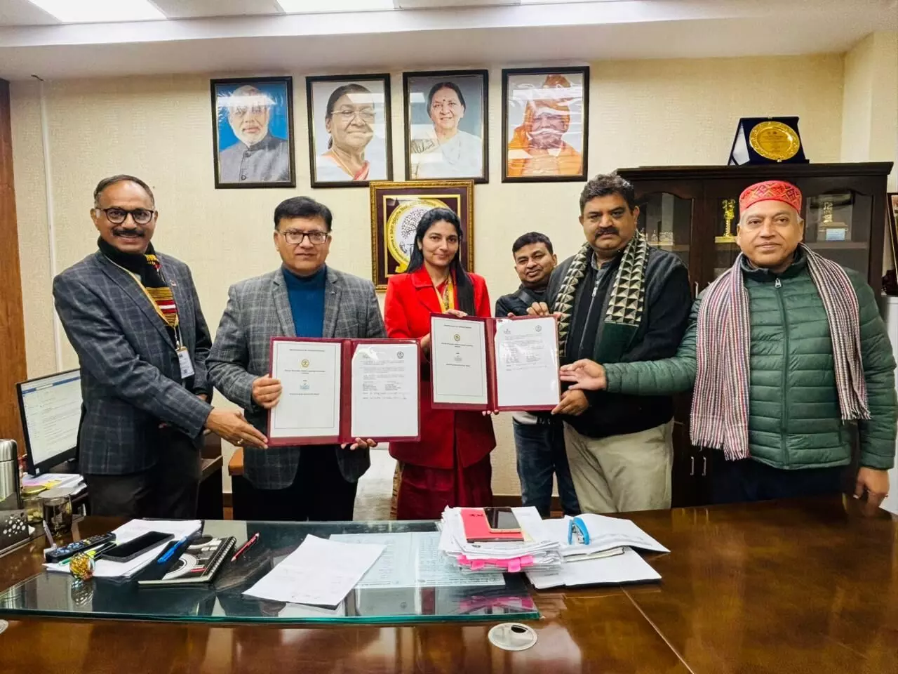 समझौता ज्ञापन के दौरान MoU नोडल अधिकारी डॉ. नीरज शुक्ला, कुलसचिव डॉ. महेश कुमार, प्रो. सौबान सईद एवं डॉ राजकुमार भी उपस्थित रहे।