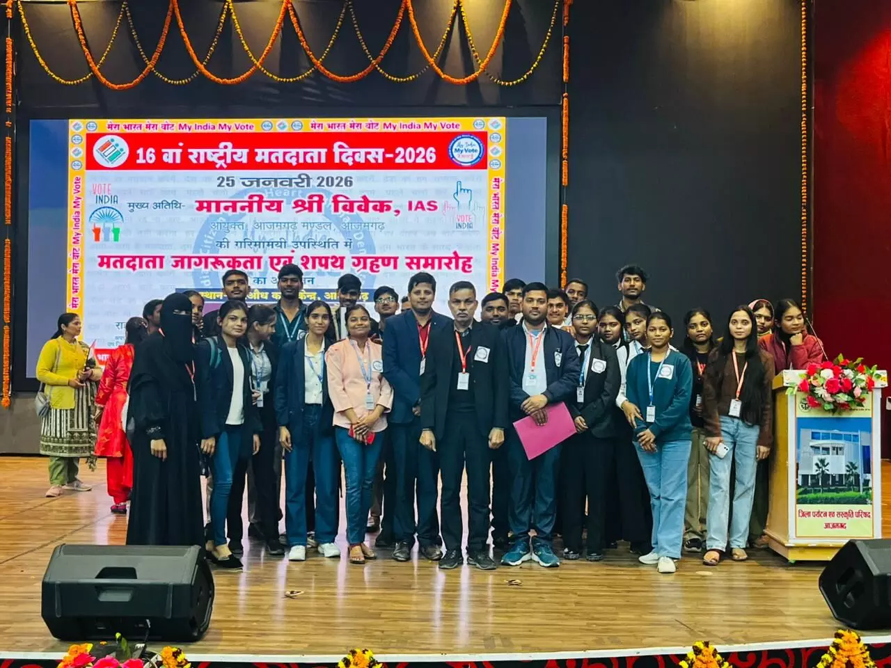 आजमगढ़।लोकतांत्रिक व्यवस्था को सुदृढ़ करने तथा युवाओं में मतदान के प्रति जागरूकता को नई दिशा देने के उद्देश्य से राष्ट्रीय मतदाता दिवस के अवसर पर एक भव्य एवं प्रभावशाली जागरूकता कार्यक्रम का आयोजन किया गया। इस कार्यक्रम में महाराजा सुहेल देव विश्वविद्यालय, आजमगढ़ के शिक्षकगण एवं बड़ी संख्या में छात्र-छात्राओं ने उत्साहपूर्वक सहभागिता कर लोकतांत्रिक मूल्यों के प्रति अपनी प्रतिबद्धता का परिचय दिया। कार्यक्रम का आयोजन भारत निर्वाचन आयोग के तत्वावधान में हरिऔद्ध कला केंद्र, आजमगढ़ में किया गया।