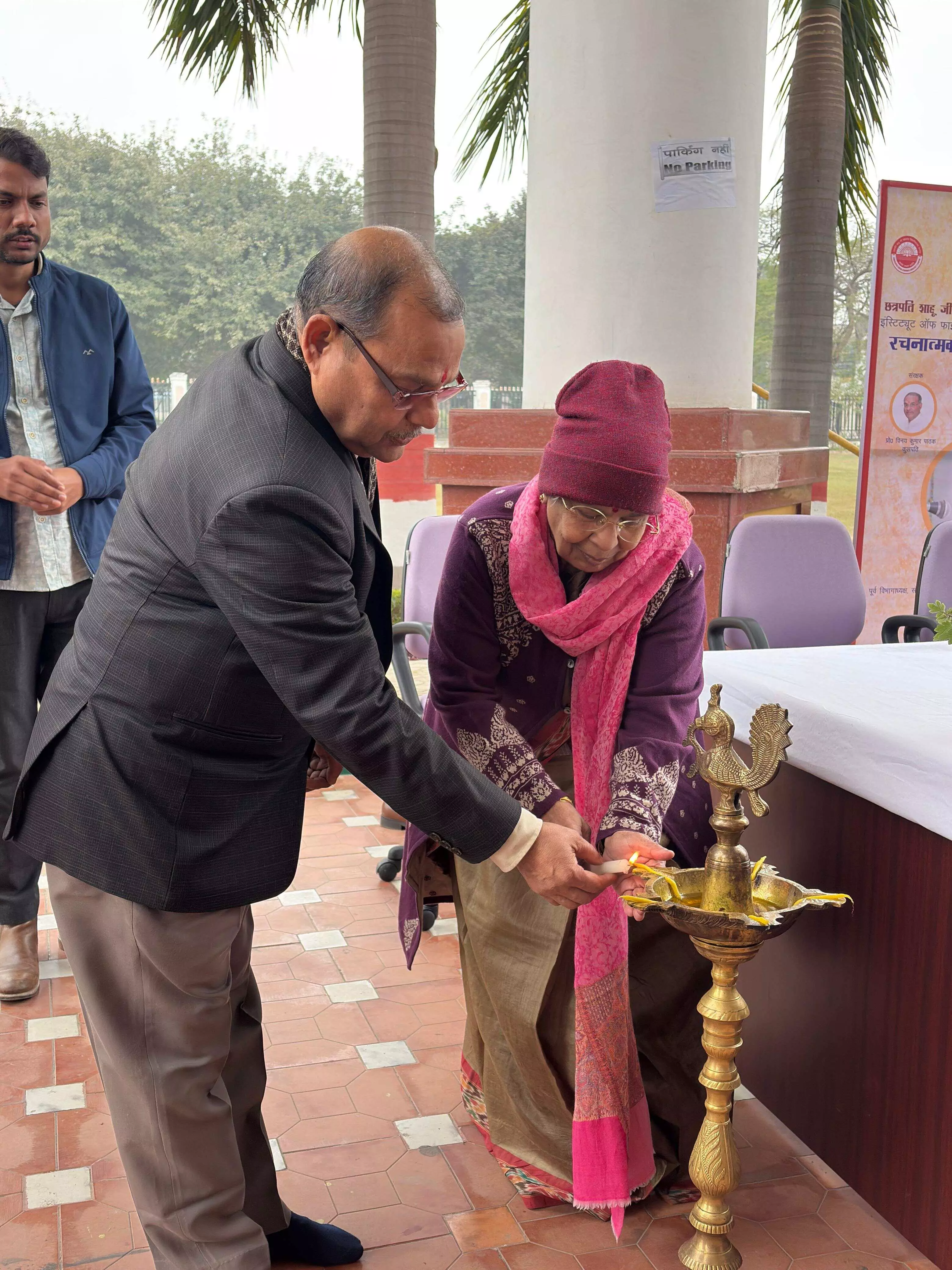 कुलपति प्रो. विनय कुमार पाठक जी की प्रेरणा से छत्रपति शाहूजी महाराज विश्वविद्यालय, कानपुर के इंस्टीट्यूट ऑफ़ फाइन आर्ट्स में आज दिनांक 29 जनवरी 2026 को दो दिवसीय “रचनात्मक लेखन कार्यशाला” का शुभारम्भ दीप प्रज्वलन करके किया गया।