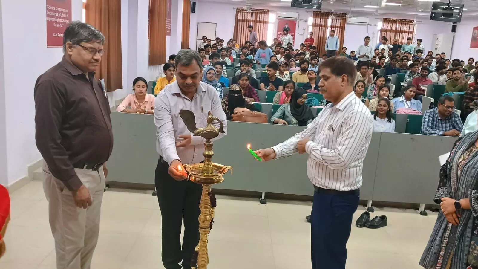 ख़्वाजा मुईनुद्दीन चिश्ती भाषा विश्वविद्यालय के इंजीनियरिंग एवं प्रौद्योगिकी संकाय में आज “रामानुजन परिघटना: आधुनिक गणित में अंतर्ज्ञान एक विधि के रूप में” विषय पर एक दिवसीय संगोष्ठी का सफल आयोजन किया गया। कार्यक्रम में विश्वविद्यालय के कुलपति, मुख्य अतिथि प्रो. (डॉ.) संजय मिश्रा, विशिष्ट वक्ता श्री सुजीत कुमार सिंह, निदेशक डॉ. राजेंद्र कुमार त्रिपाठी सहित संकाय के प्राध्यापकगण एवं बड़ी संख्या में छात्र-छात्राएँ उपस्थित रहे।