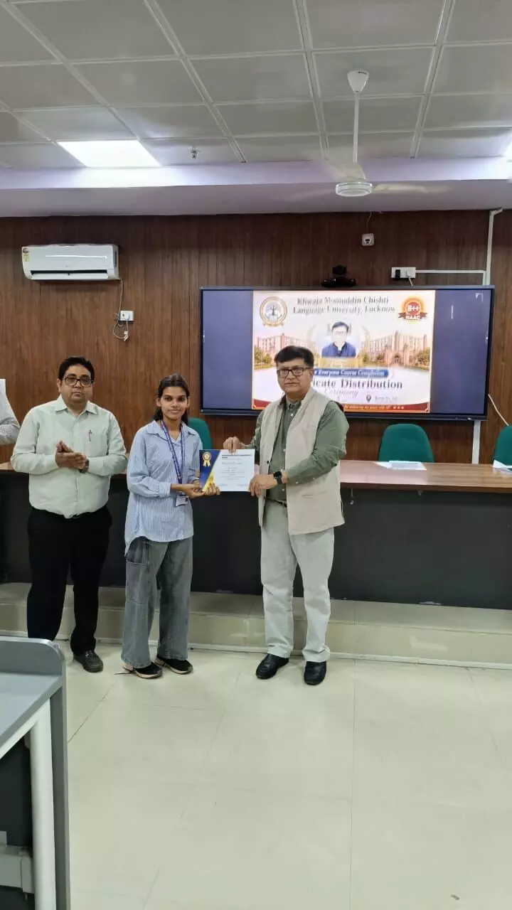 ख़्वाजा मुईनुद्दीन चिश्ती भाषा विश्वविद्यालय, लखनऊ के संगणक विज्ञान एवं अभियांत्रिकी विभाग द्वारा आयोजित एक माह की अवधि का “एआई फॉर एवरीवन” पाठ्यक्रम सफलतापूर्वक सम्पन्न हुआ। इस अवसर पर प्रमाण-पत्र वितरण समारोह का आयोजन विश्वविद्यालय के शैक्षणिक खंड के कक्ष संख्या 443 में किया गया।