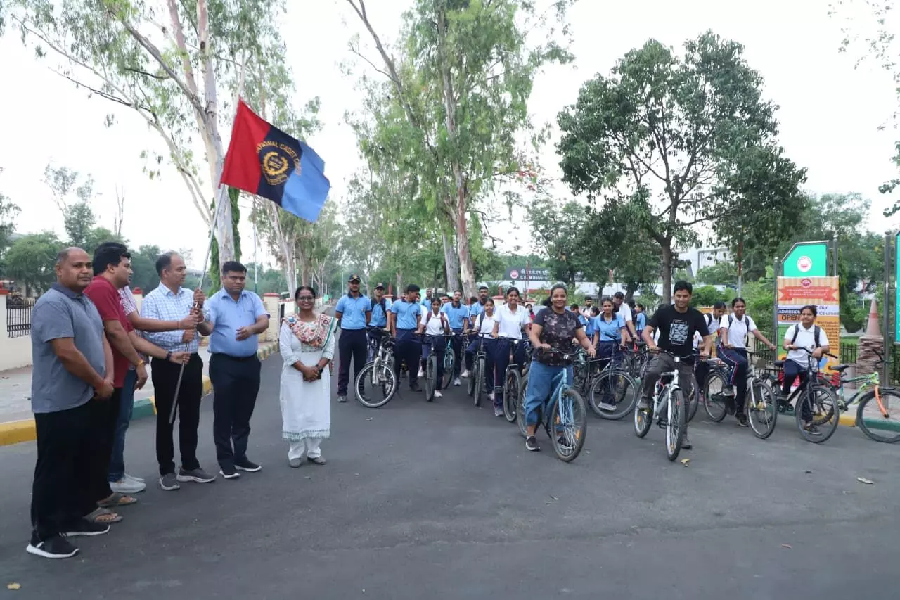 कानपुर । छत्रपति शाहू जी महाराज विश्वविद्यालय में साइकिल रैली का आयोजन किया गया, जिसमें एनसीसी के छात्र-छात्राओं तथा छात्रावास के विद्यार्थियों ने बढ़-चढ़कर सहभागिता की। इस आयोजन का उद्देश्य युवाओं में राष्ट्रीय एकता, अनुशासन, स्वास्थ्य के प्रति जागरूकता तथा सामाजिक उत्तरदायित्व की भावना को सुदृढ़ करना रहा।