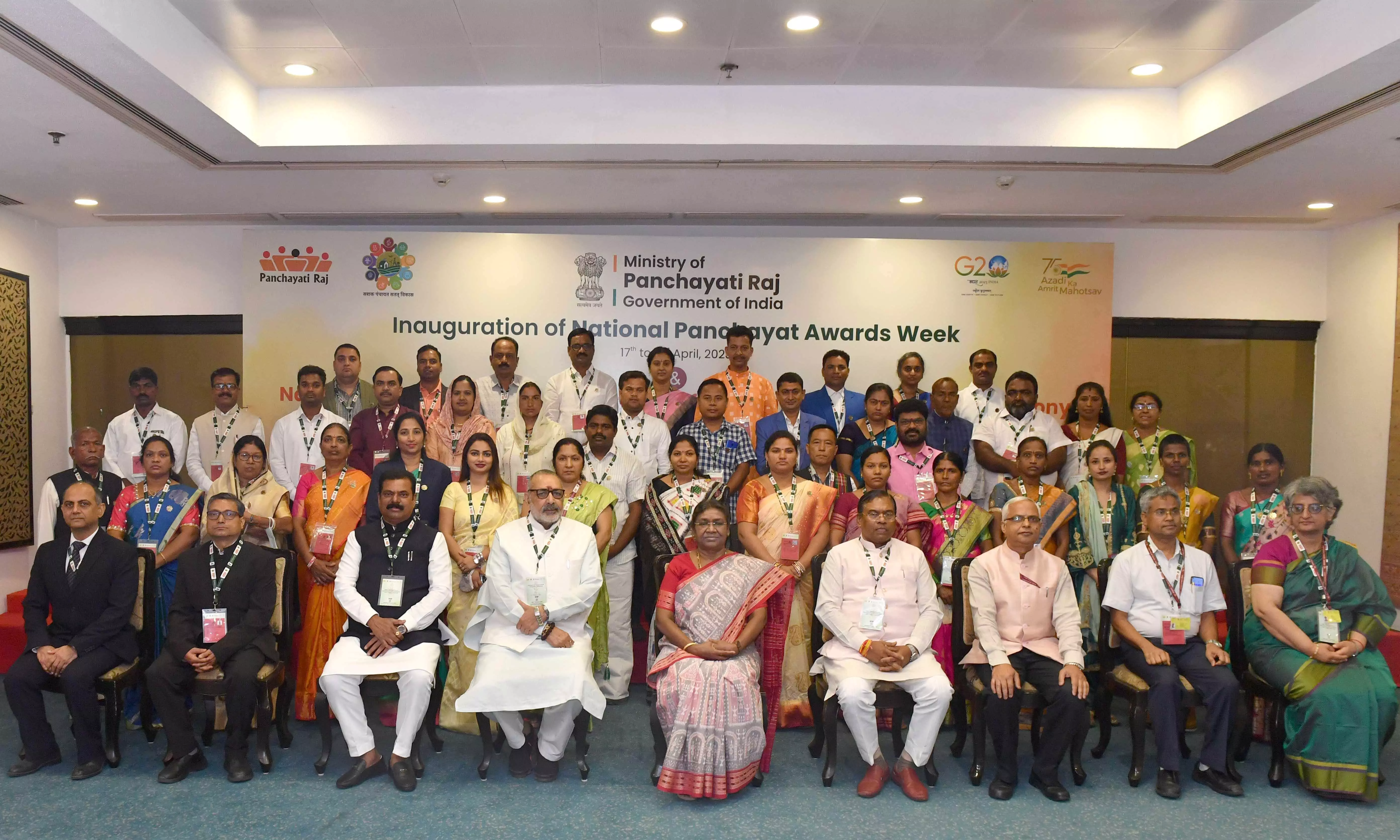 राष्ट्रपति श्रीमती द्रौपदी मुर्मु ने आज (17 अप्रैल, 2023) नई दिल्ली में राष्ट्रीय पंचायत पुरस्कार प्रदान किए और राष्ट्रीय पंचायत प्रोत्साहन सम्मेलन का उद्घाटन किया।