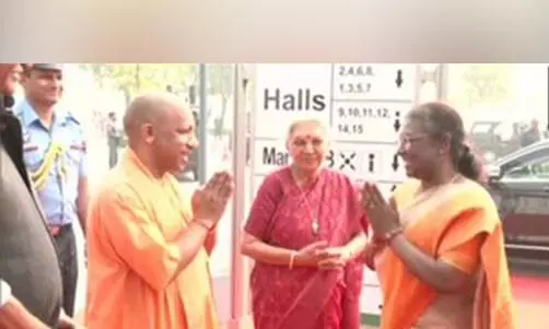 India Water Week was launched in Greater Noida with the arrival of President Droupadi Murmu.Anandiben Patel, the governor, and Yogi Adityanath, the chief minister, welcomed the president.