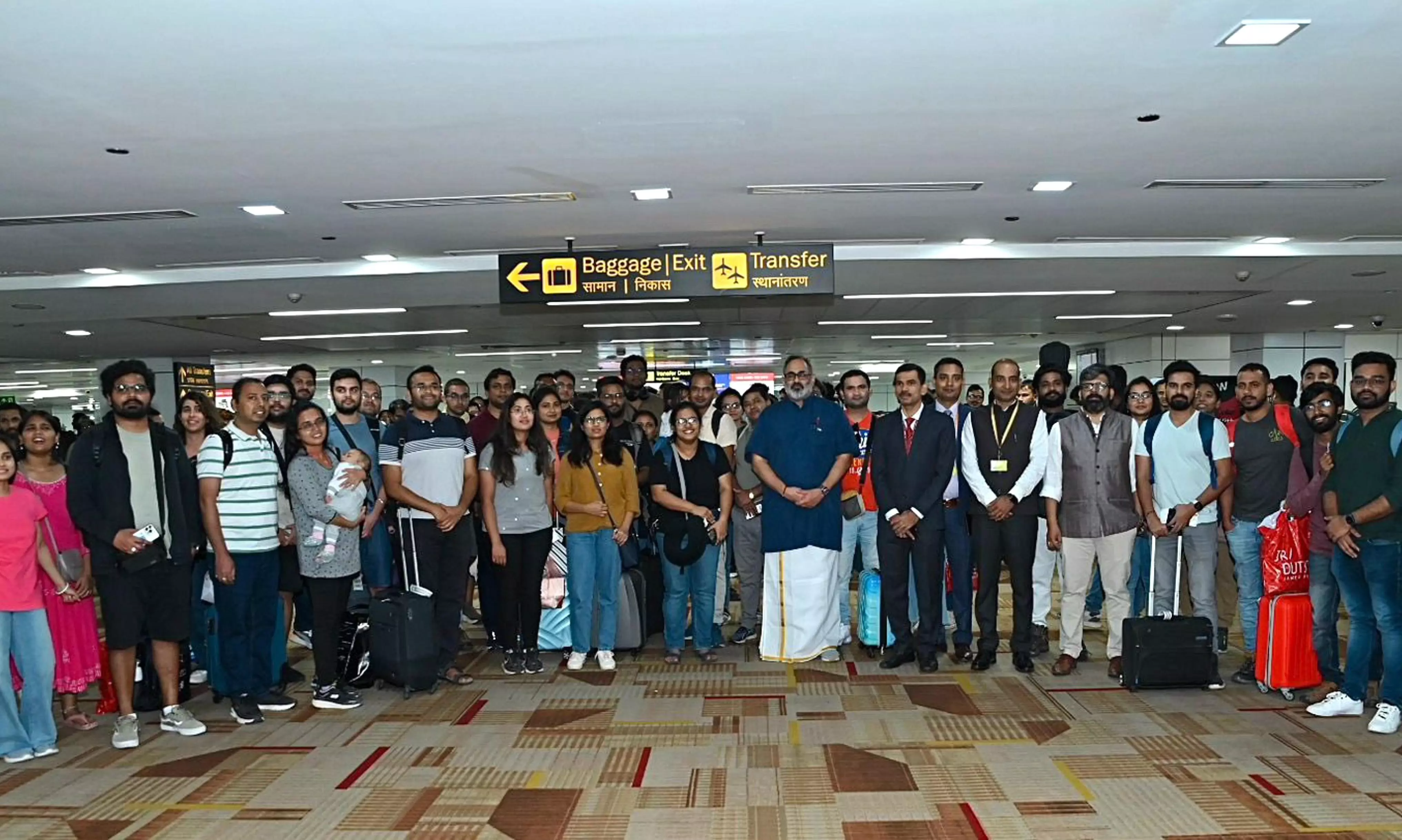 केंद्रीय मंत्री राजीव चंद्रशेखर ने दिल्ली हवाई अड्डे पर यात्रियों का स्वागत किया जब वे टरमैक की ओर से लाउंज क्षेत्र में पहुंचे। उन्होंने हाथ जोड़कर उनका अभिवादन किया और उनमें से कई लोगों से हाथ मिलाकर कहा, "घर में स्वागत है"।