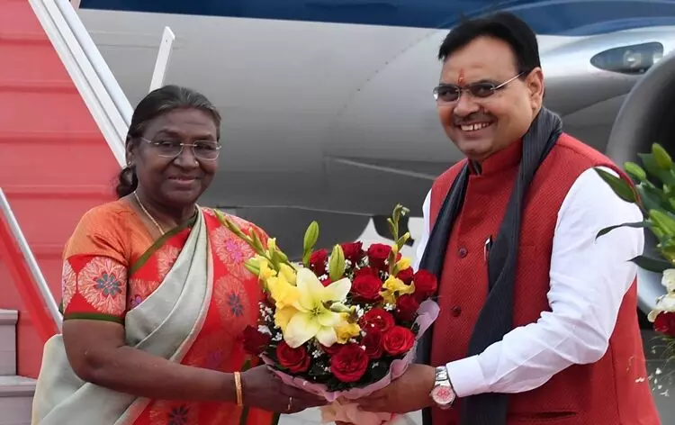 राष्ट्रपति द्रौपदी मुर्मू राजस्थान की 2 दिवसीय यात्रा पर कल शाम जयपुर पहुंचीं। मुख्यमंत्री भजन लाल शर्मा ने हवाई अड्डे पर उनका स्वागत किया।