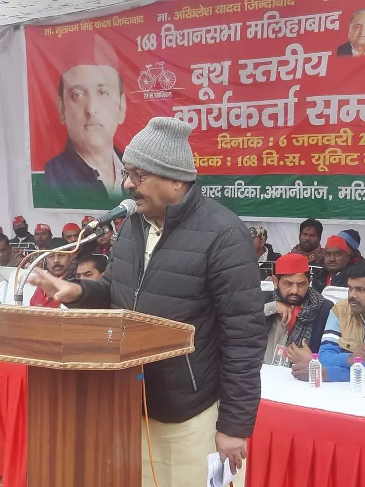 मलिहाबाद विधानसभा क्षेत्र के समाजवादी पार्टी का बूथ स्तरीय कार्यकर्ता सम्मेलन 168 मलिहाबाद विधानसभा क्षेत्र के अध्यक्ष वीरेंद्र प्रताप सिंह यादव के नेतृत्व में आयोजित हुआ।जिसमें मुख्य अतिथि के रूप में एमएलसी शशांक यादव ने कार्यकर्ताओं को संबोधित करते हुए कहा कि अखिलेश यादव के नेतृत्व में समाजवादी पार्टी की सरकार बनने पर मार्च तक ही नहीं बल्कि पूरे पांच साल तक फ्री राशन वितरण करायेगे, सभी को 300 यूनिट निःशुल्क मे बिजली दी जाएगी,खेतिहर किसानों को सिंचाई के लिए फ्री बिजली देंगे,बुजुर्ग महिला,पुरुष,विधवा को पांच सौ की जगह 1500 सौ रुपए पेंशन दिया जाएगा। उन्हें मिलती ने अपने संबोधन में कहा समाजवादी पार्टी नेता जी मुलायम सिंह यादव के पद चिन्हों पर चलकर हर गरीब का दुख दर्द समझ कर हर बेरोजगार का हर किसान का हर व्यापारी का हर नौजवान का दर्द उनमें समाहित है वह अपने जीवन पर्यंत में संघर्ष करते चले आ रहे हैं उन्हें के पद चिन्हों पर राष्ट्रीय अध्यक्ष अखिलेश यादव उत्तर प्रदेश का भविष्य लेकर आपके सामने संघर्ष करते हुए चल रहे हैं देश और प्रदेश की वर्तमान परिस्थितियों को देखते हुए अखिलेश यादव को मजबूत करना होगा और उन्हें उत्तर प्रदेश का प्रतिनिधित्व पाने के लिए हम आप सब को एकजुट होना होगा और आने वाले इस चुनाव में दलित , पिछड़े, गरीबों, अल्पसंख्यको, किसानों मजदूरों नौजवानों की सरकार लाना हैं ।