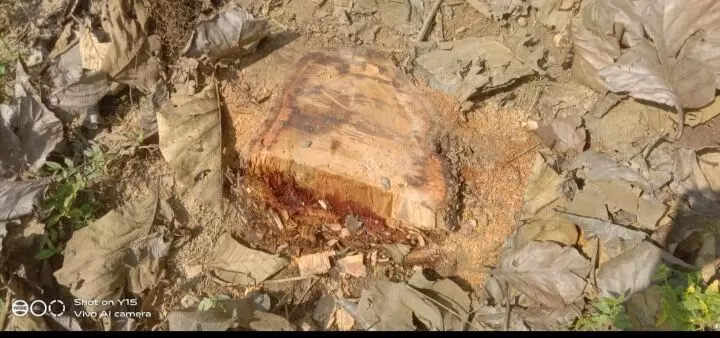 बिना अनुमति के काट डाले गए हरे भरे सागौन के पेड़